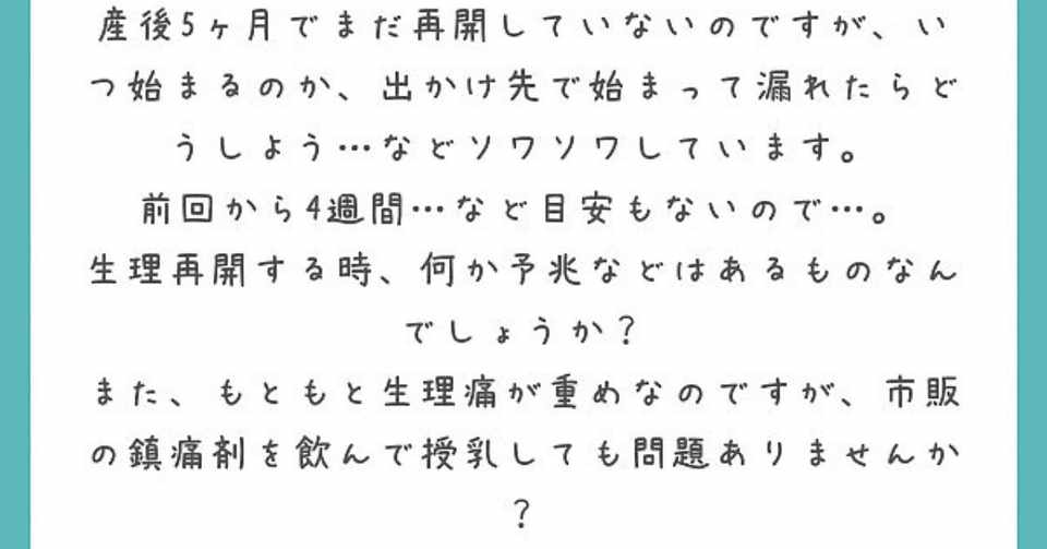 第14回 産後いつ生理再開するか不安 授乳中でも生理痛用の痛み止めは飲める みかこ Note