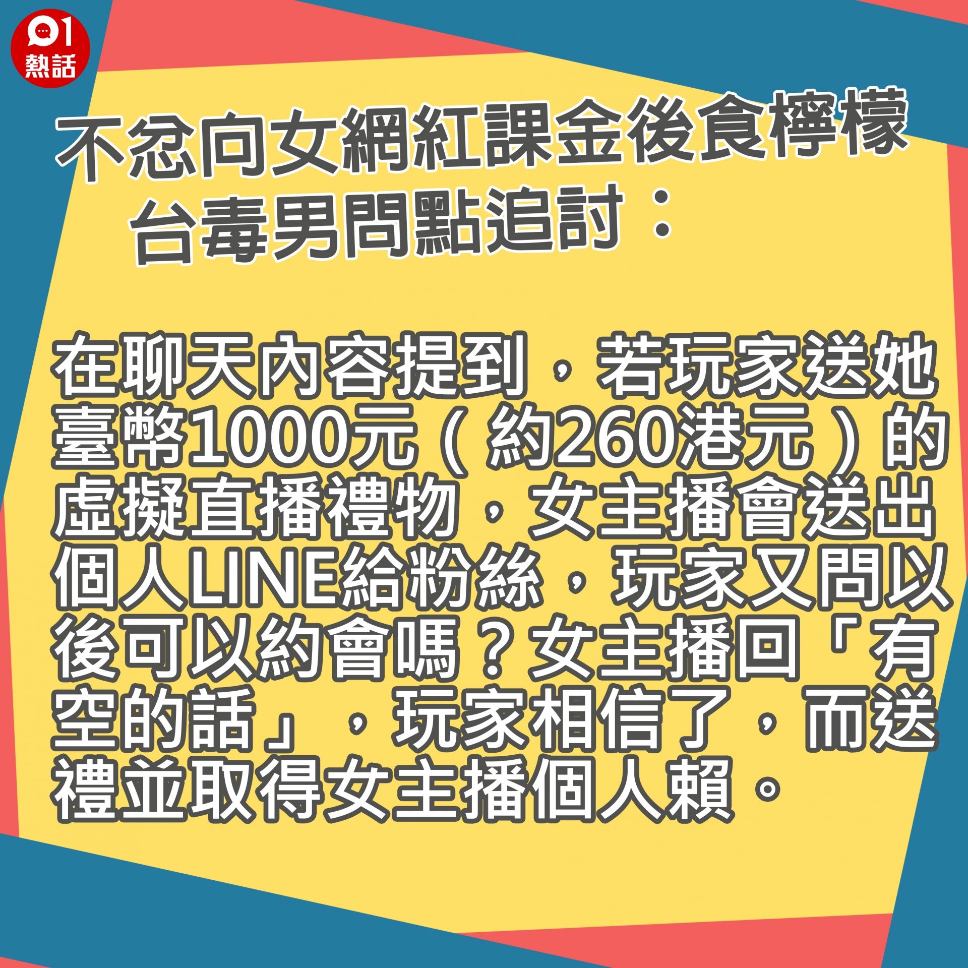 台男課金直播女求約會獲回覆 有空的話 期望落空欲上法庭追討 香港01 熱爆話題