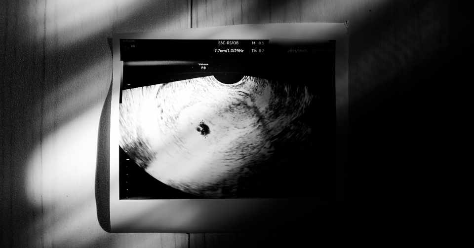 赤ちゃんがいる証 小さな袋が見えた 妊娠2ヶ月の超音波写真